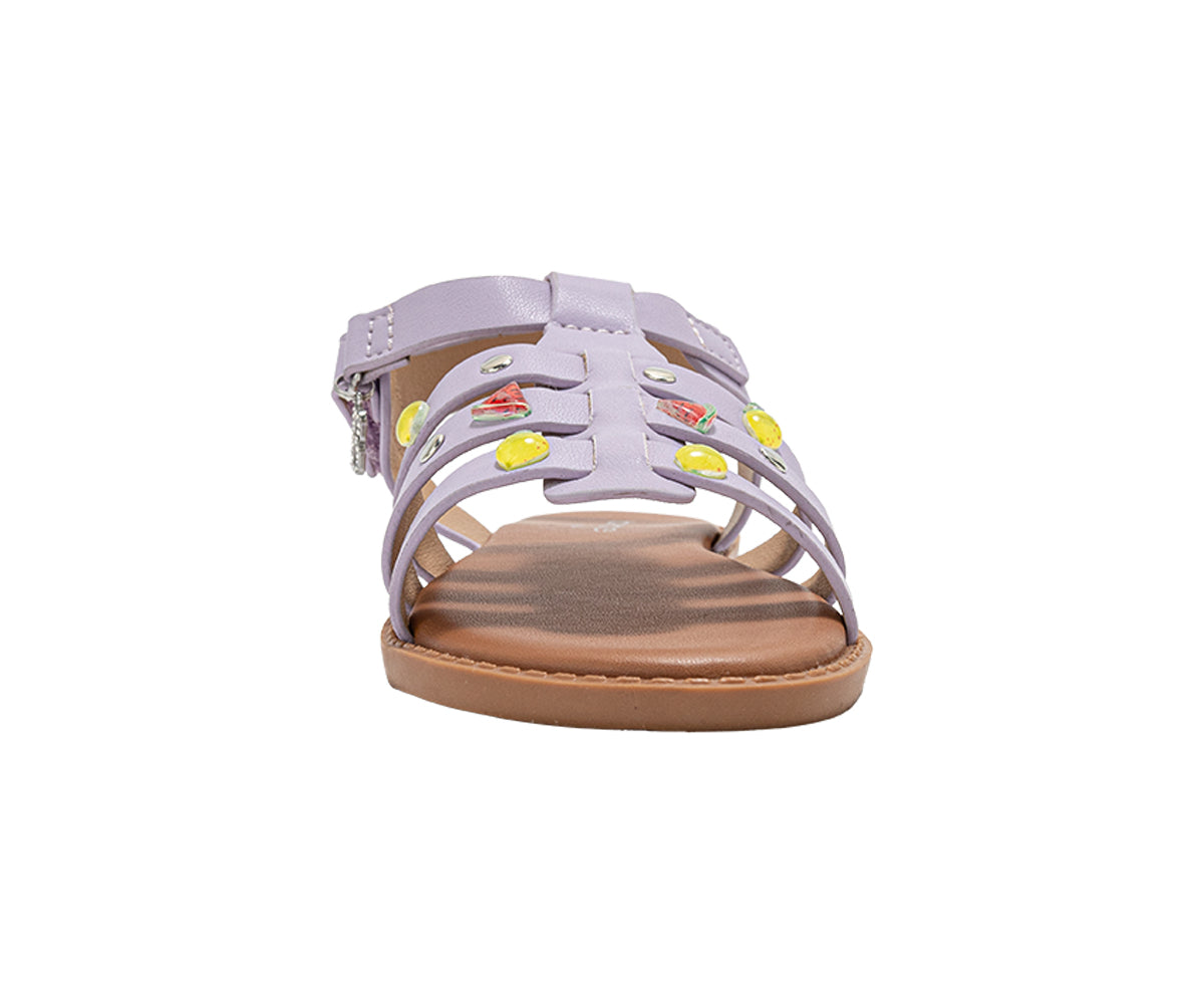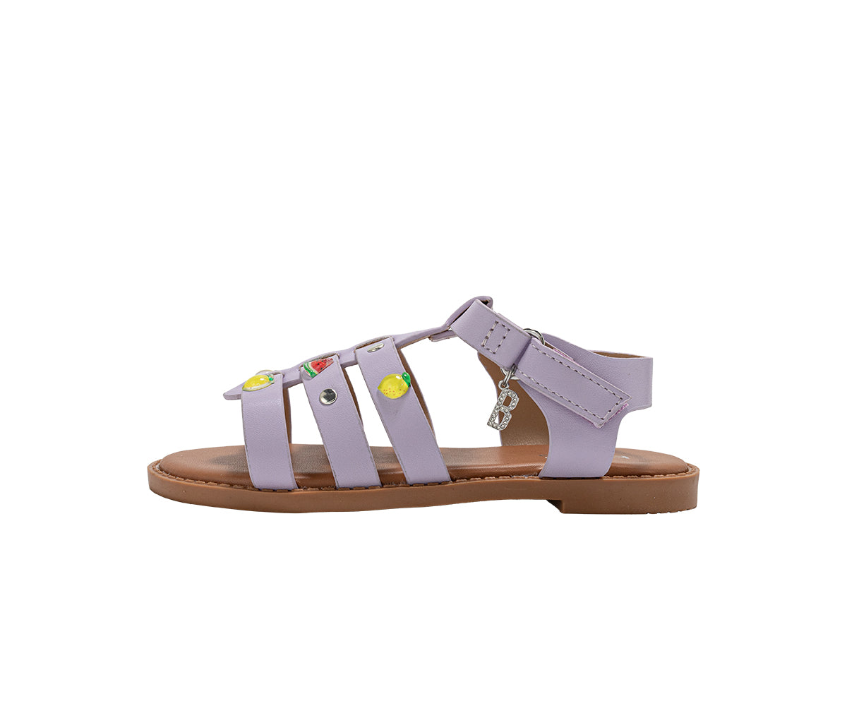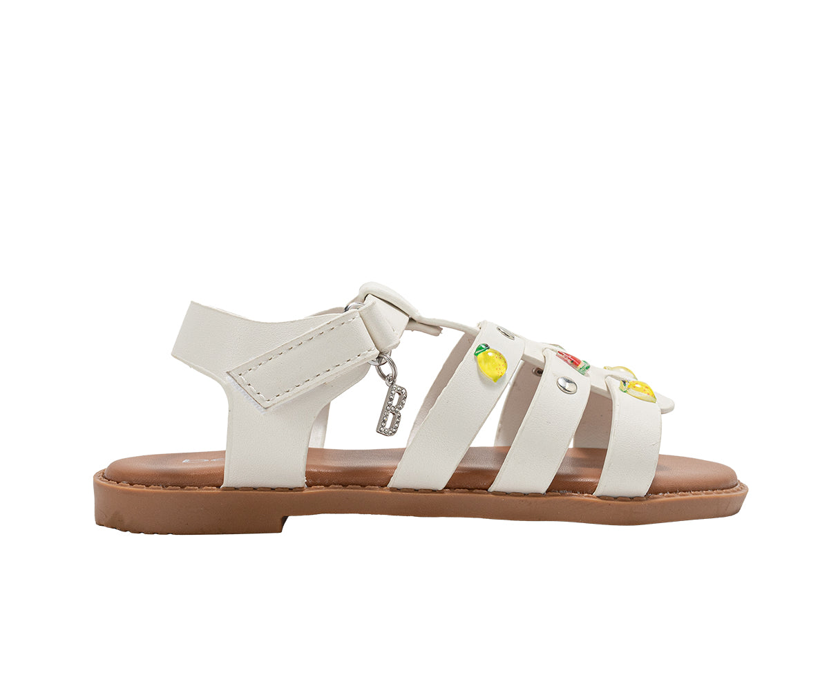 - Fashion design – girls fashion sandals with fruit studs, hanging B charm, and metal accents, designed as cute flat summer sandals for girls