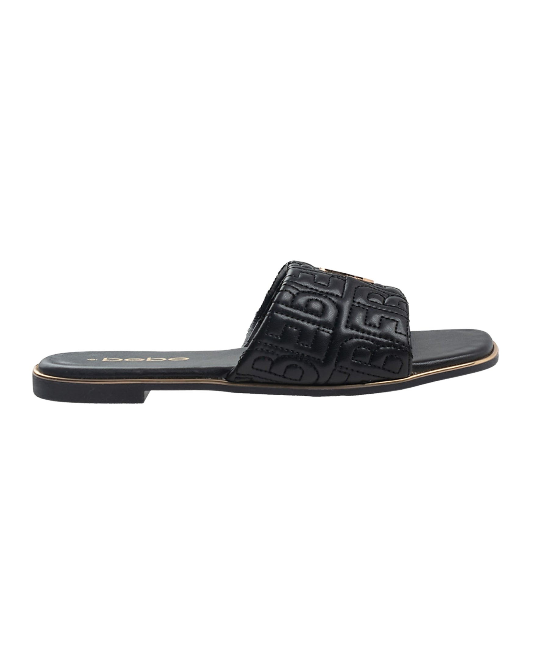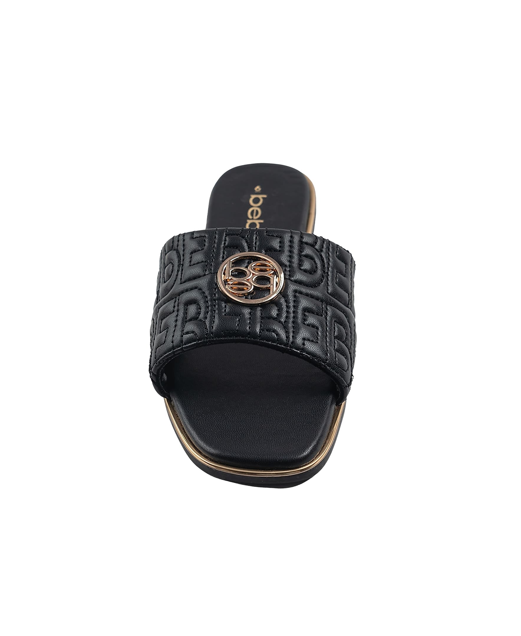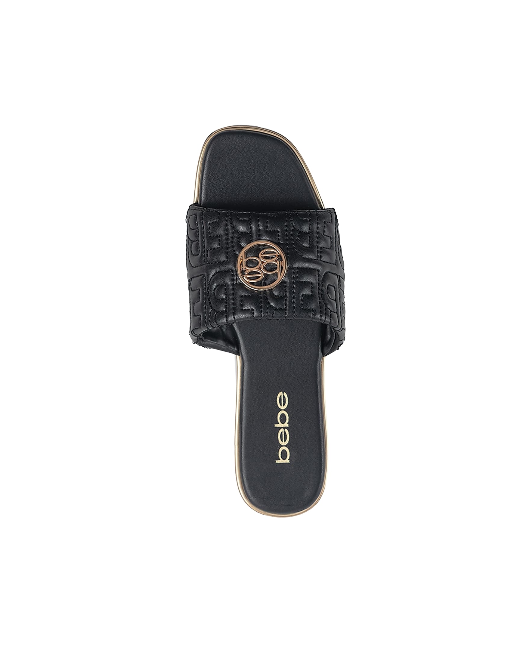 bebe Women's Fashion Sandal with Quilted Repeat Logo and Medallion