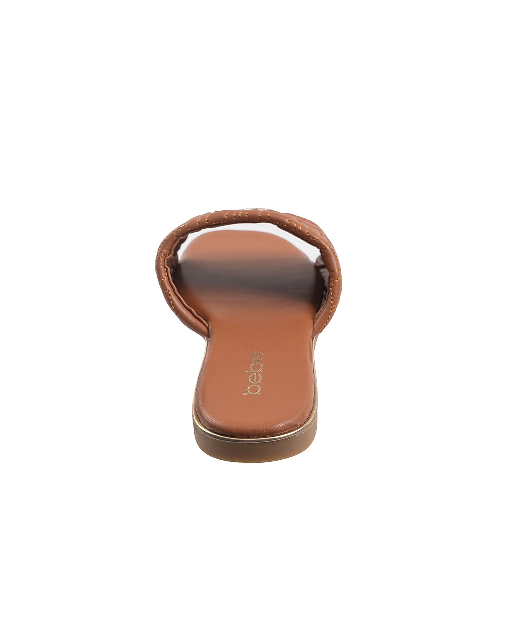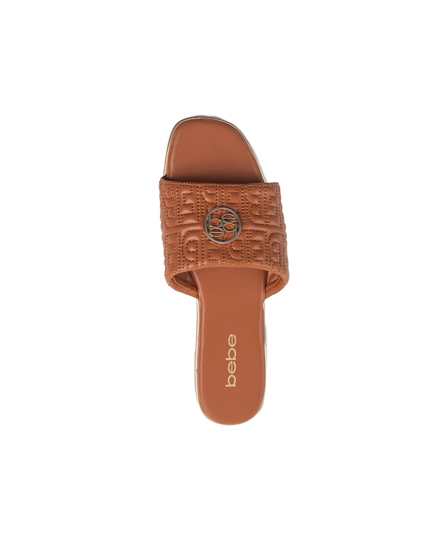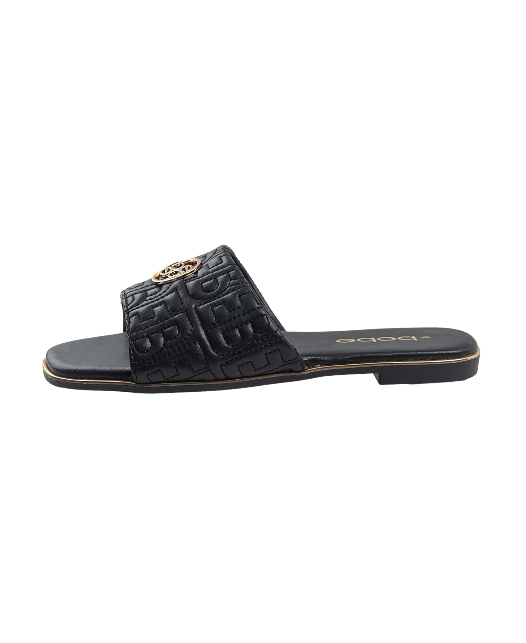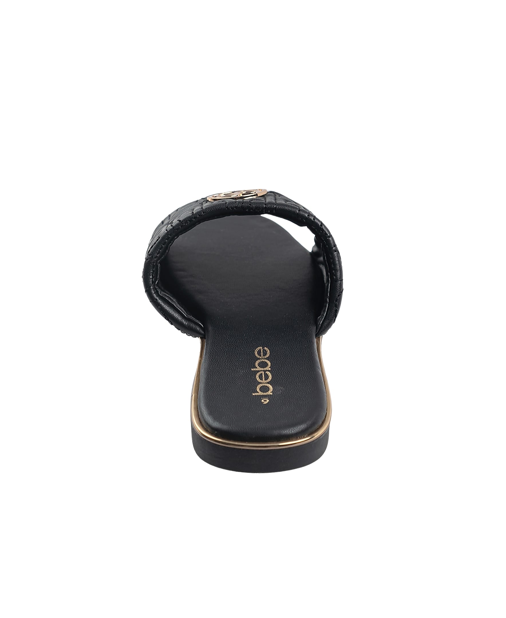 bebe Women's Fashion Sandal with Quilted Repeat Logo and Medallion