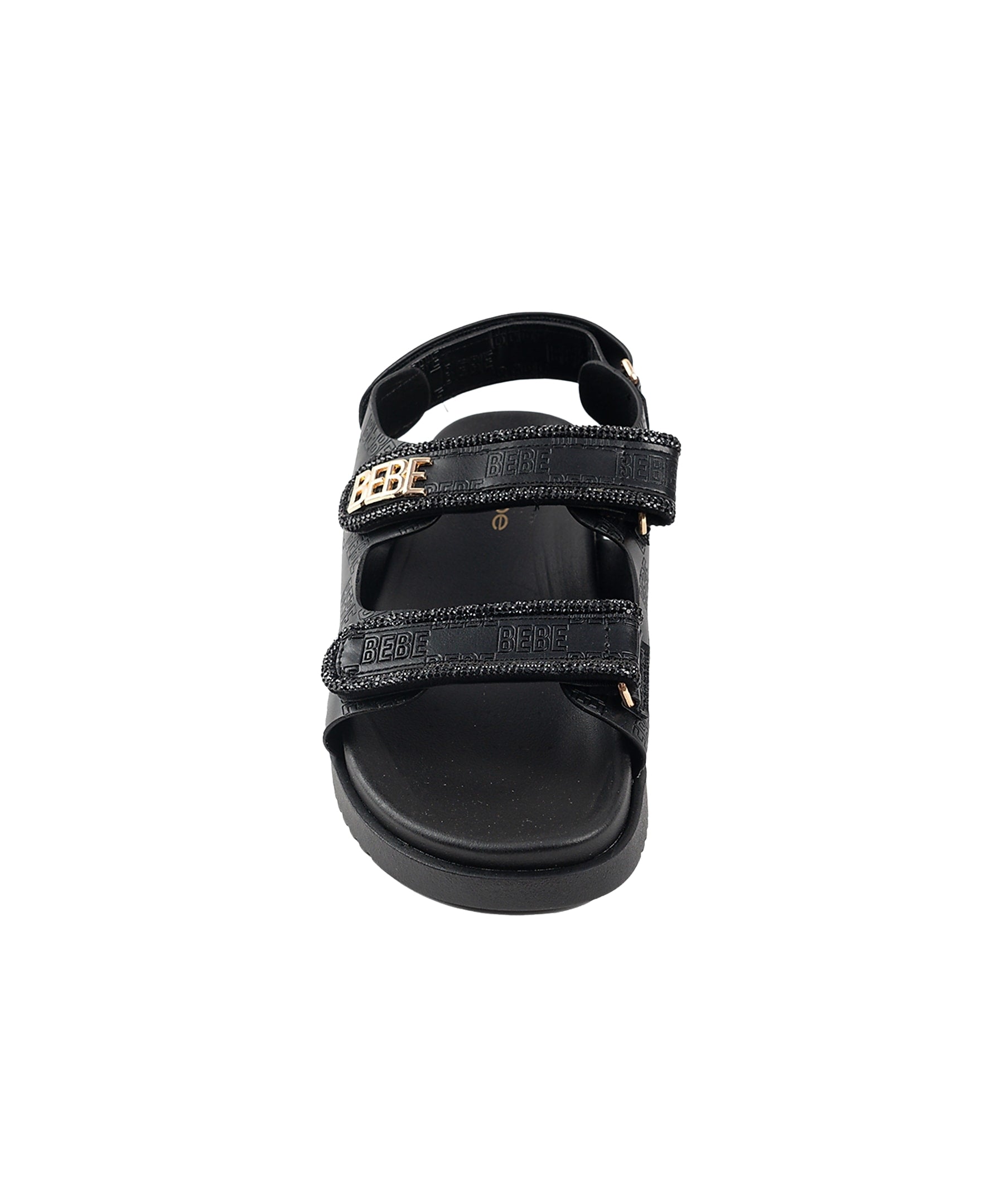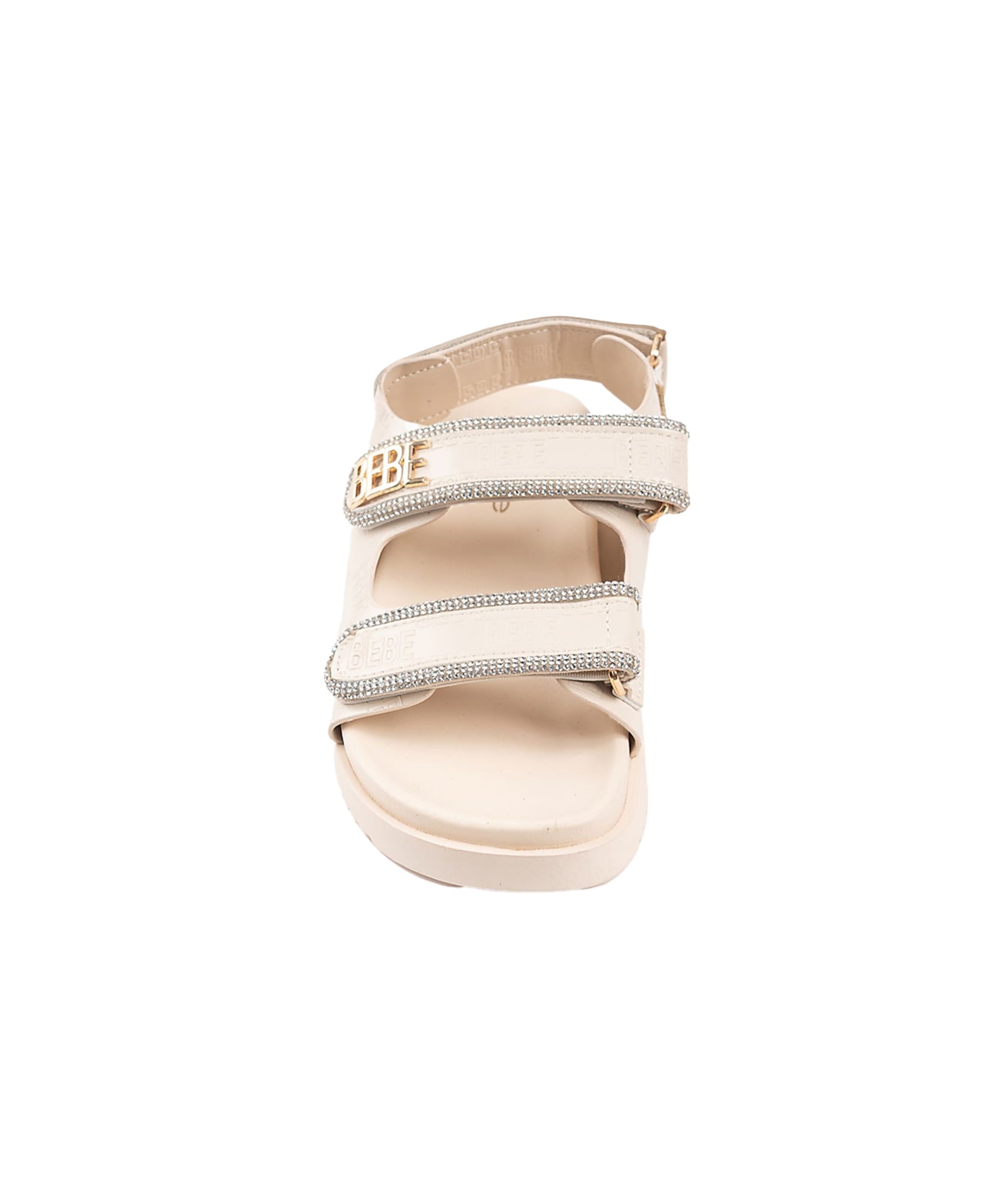 Step out in style with these chic sandals featuring rhinestone rope binding for a subtle sparkle. The signature Bebe logo rivet adds a touch of elegance to the design. With adjustable straps and a comfortable fit, these sandals are perfect for casual outings or summer days.