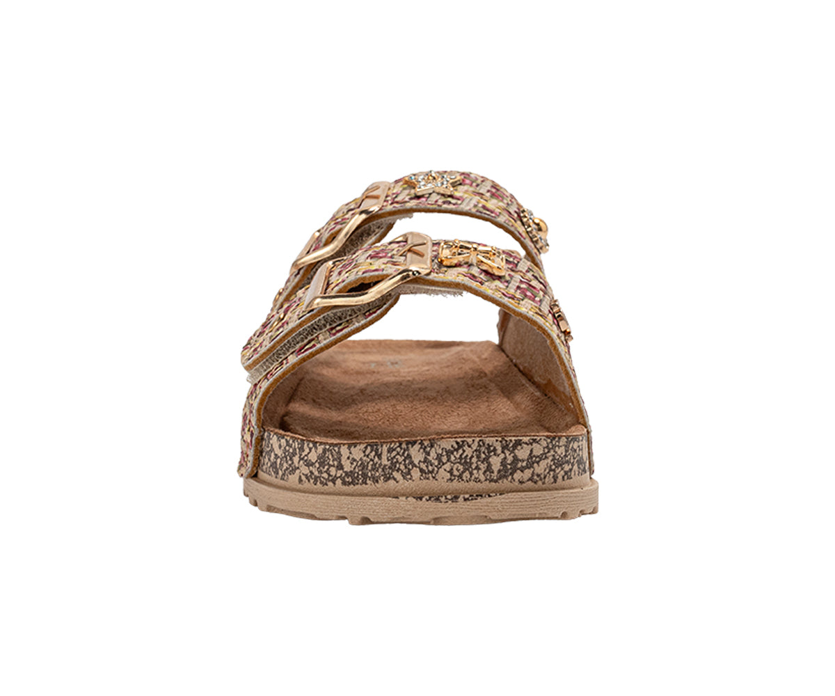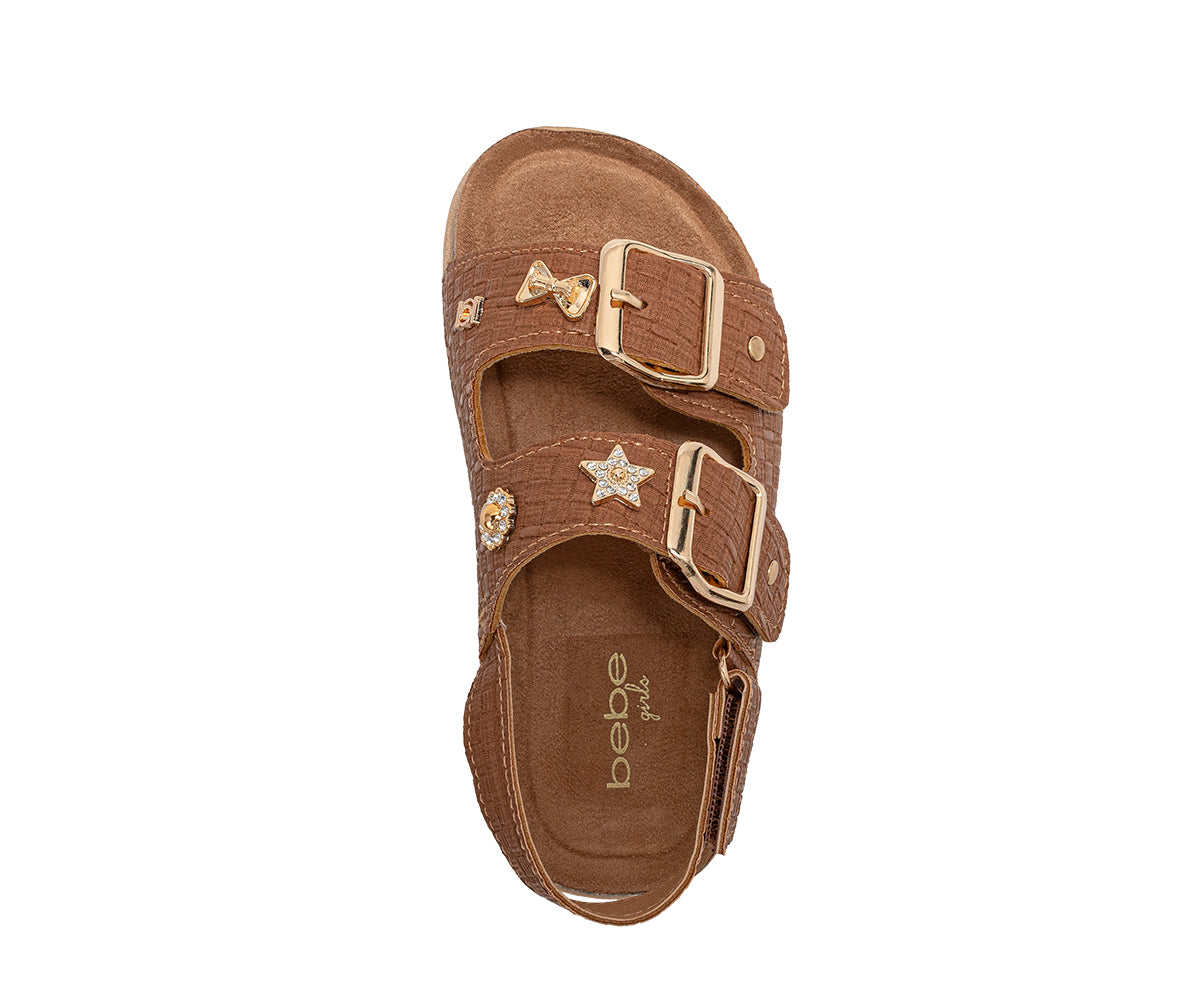 bebe Girl's Footbed Sandals - Comfortable Design with Double Buckle and Charms