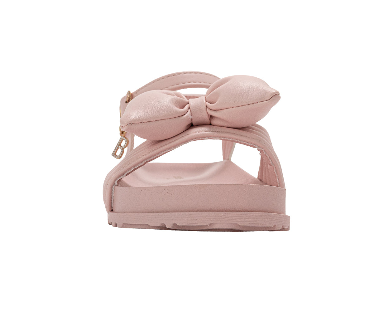 bebe Girl's Footbed Sandals - Lightweight Comfort & Adjustable Strap with Puffy Bow Detail