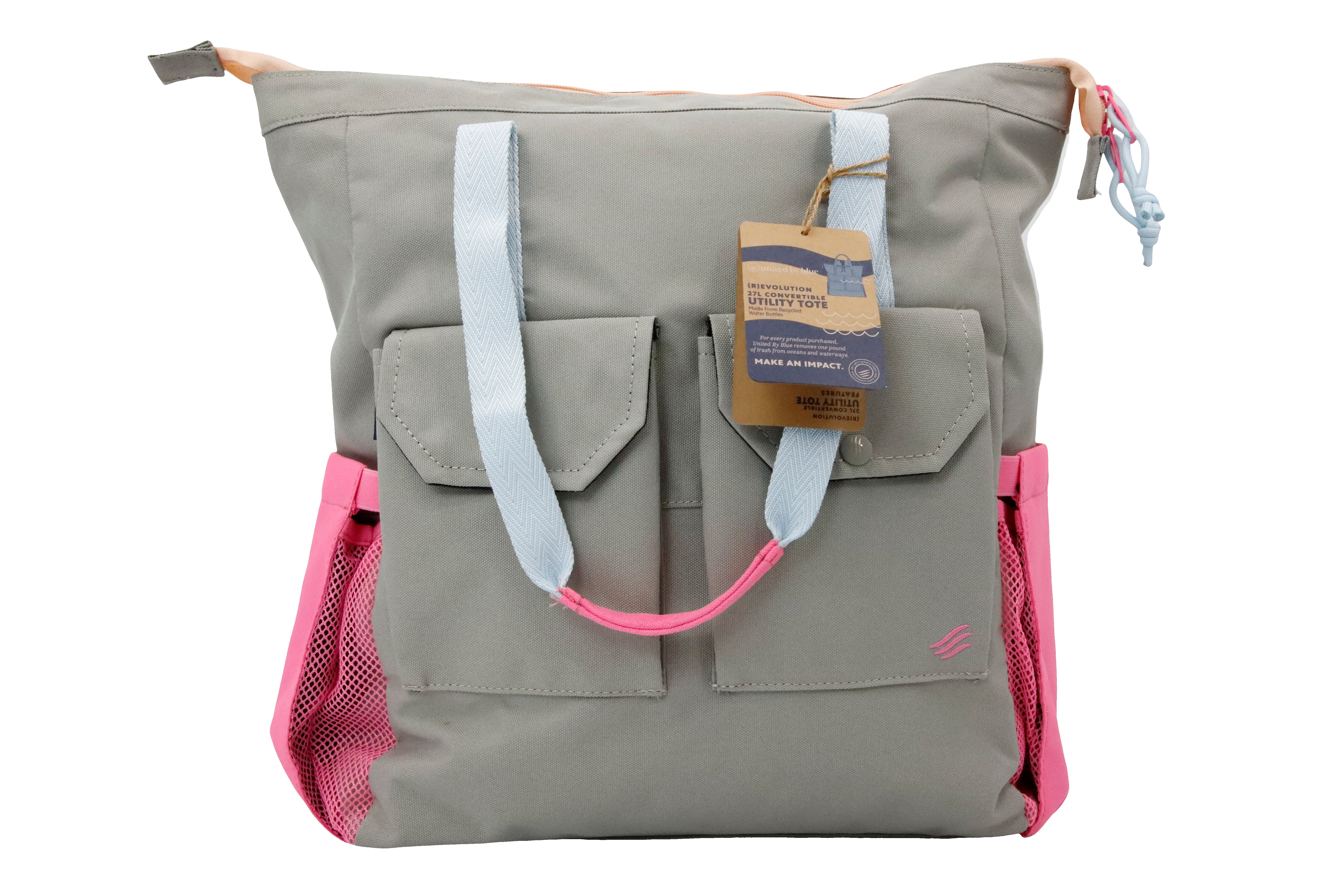 Built for movement and made with purpose, the (R)evolution™ Utility Convertible Tote is designed to adapt to your everyday routine. Crafted from durable recycled materials, this versatile bag transitions effortlessly from tote to backpack—ideal for commuting, campus life, travel days, or weekend outings. 1 product purchased = 1 pound of trash cleaned.