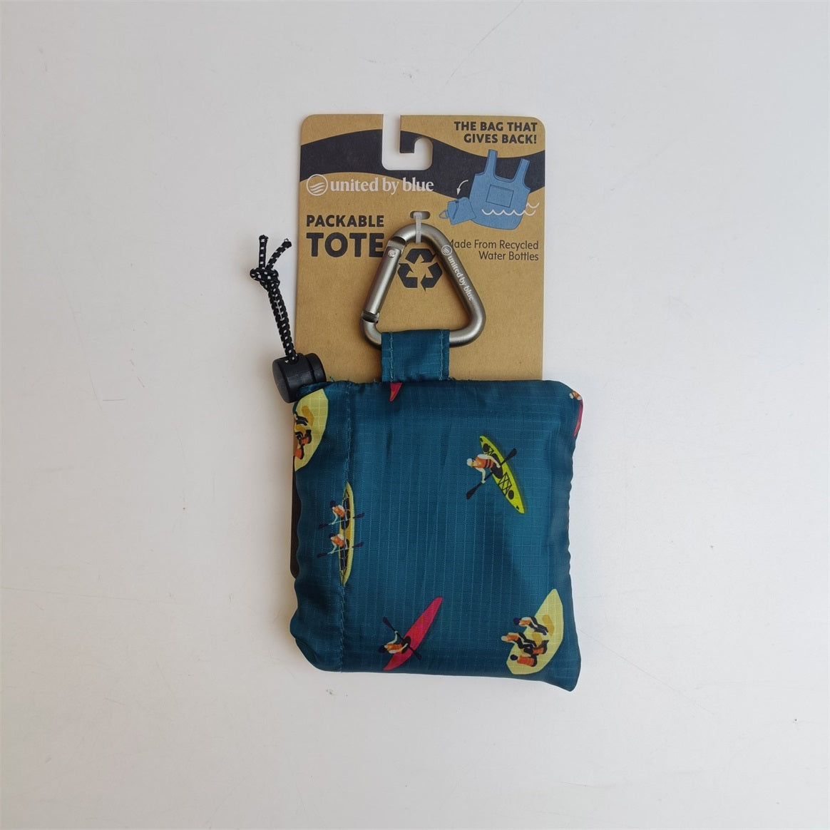The easiest way to kick the single-use plastic bag habit: a packable tote you can have on you all the time. This collapsible tote is water-resistant, stain-resistant, and made from recycled plastic bottles. Includes a handy carabiner loop so you can clip it to your bag or stash it away. 1 product purchased = 1 pound of trash cleaned.